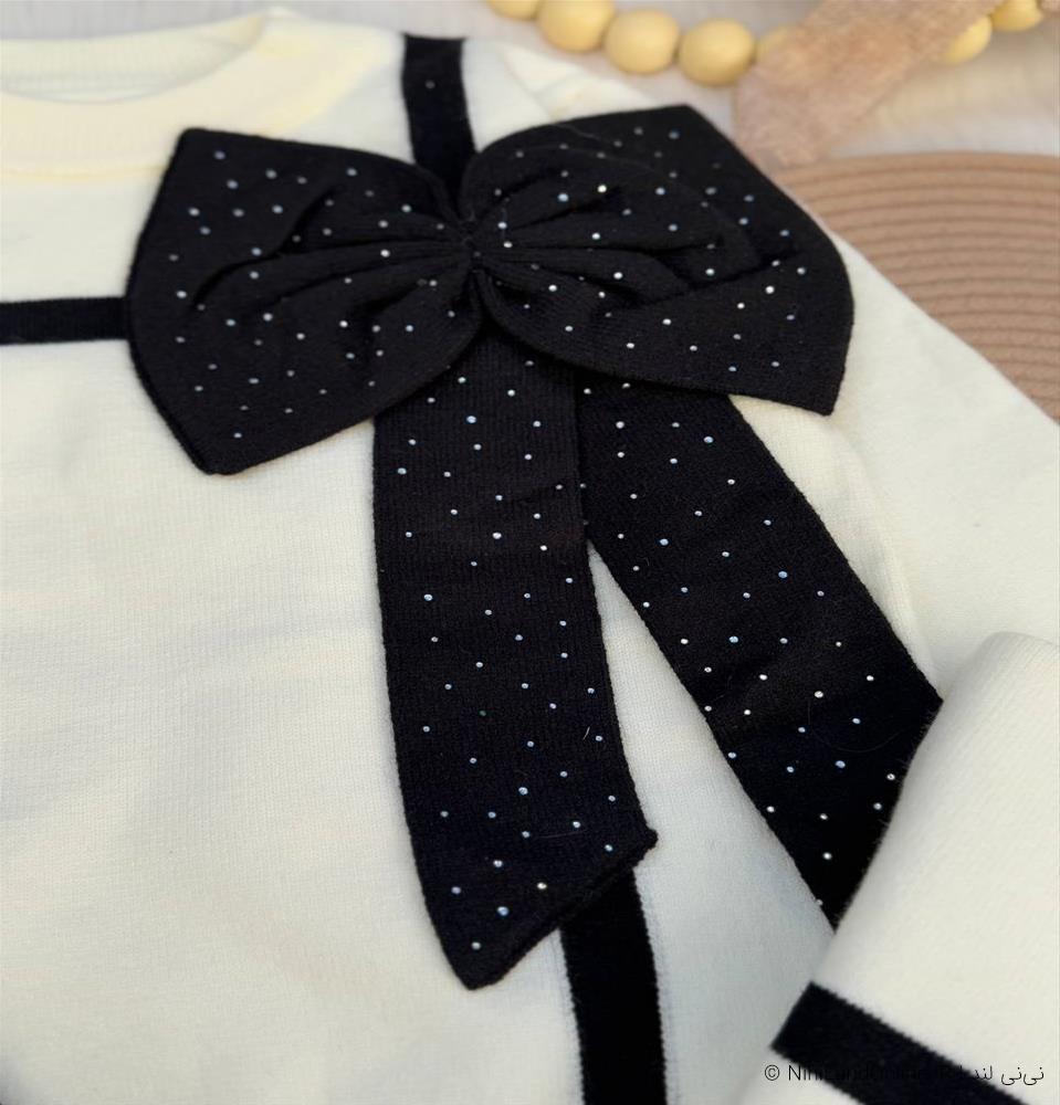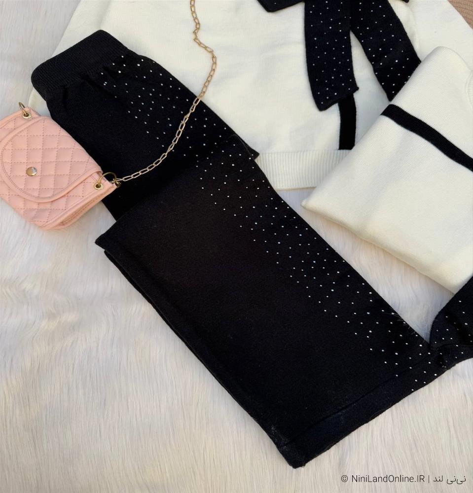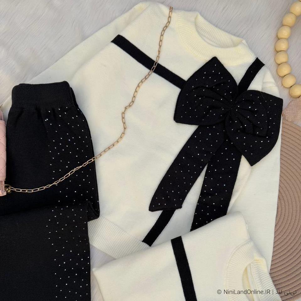 دو تیکه بلوز شلوار بافت طرح پاپیون نگینی کد 8088