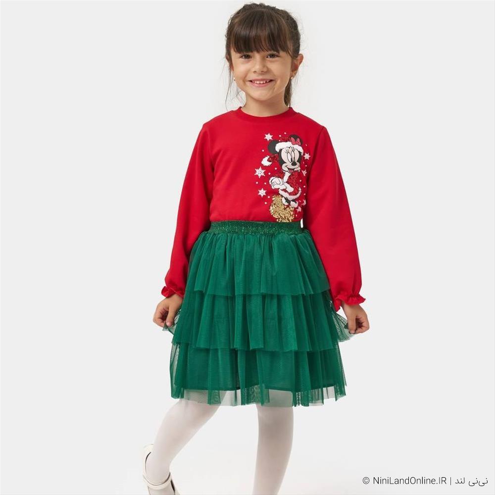 ست دو تیکه بلوز دامن استردار کرکدار خفیف کریسمسی کاج ترک کد 18721