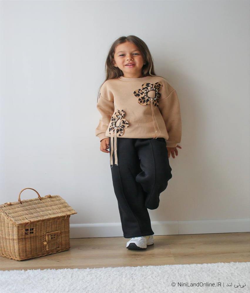 بلوز شلوار دخترانه طرح فلاور ترک کد 25567