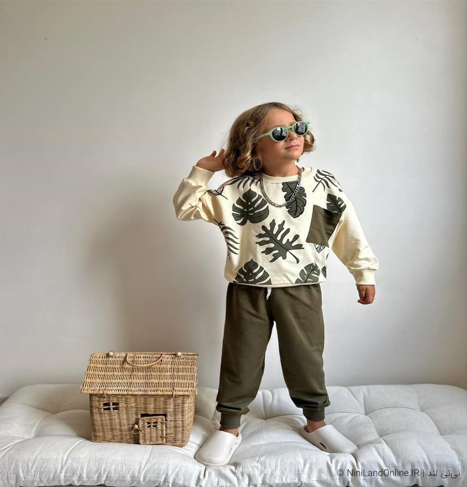 دو تیکه پسرانه طرح برگ دورس سه نخ ترک کد 66440