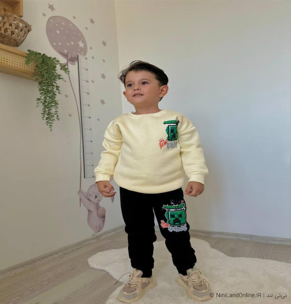 دو تیکه بلوز شلوار اسلش طرح ماینکرافت ترک کد 88990