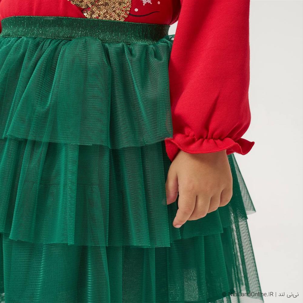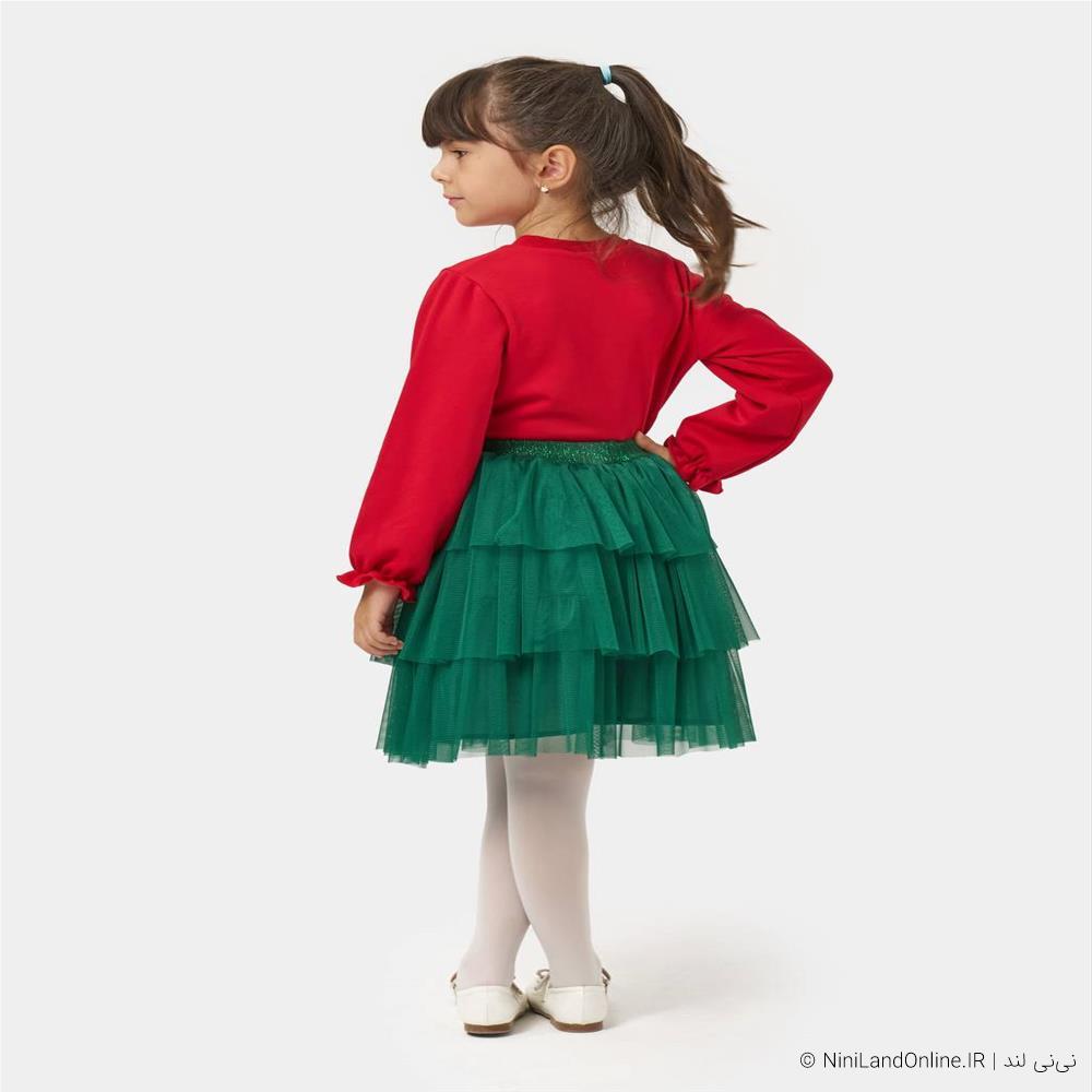 ست دو تیکه بلوز دامن استردار کرکدار خفیف کریسمسی کاج ترک کد 18721